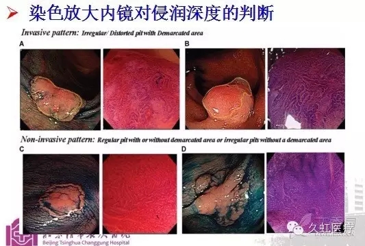 圖2. 染色放大內(nèi)鏡對浸潤深度的判斷